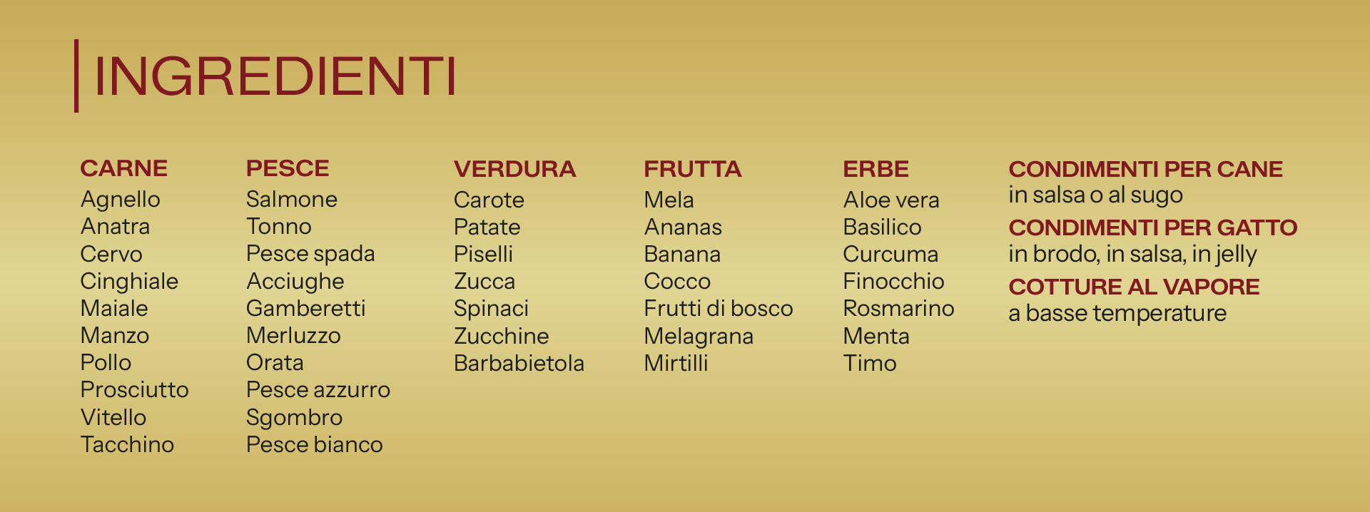 Ogni ricetta è completa ed equilibrata, naturalmente ricca di proteine, vitamine, fibre e sali minerali, ed è pensata per sostenere il benessere quotidiano di cani e gatti, trasformando ogni pasto in un gesto d’amore.